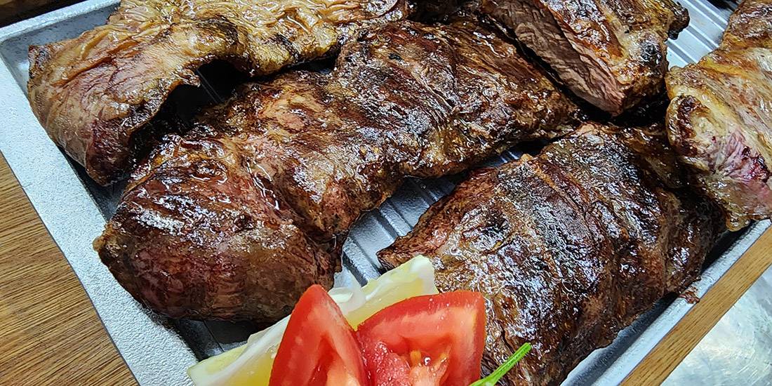 BLAS DE ROSALES (para 2 personas) Empanada criolla, provoleta, chorizo, morcilla, salchicha, chinchulín, molleja, costilla de cerdo, costilla, vacío, chivito; papas fritas con huevo revuelto y ensalada mixta.