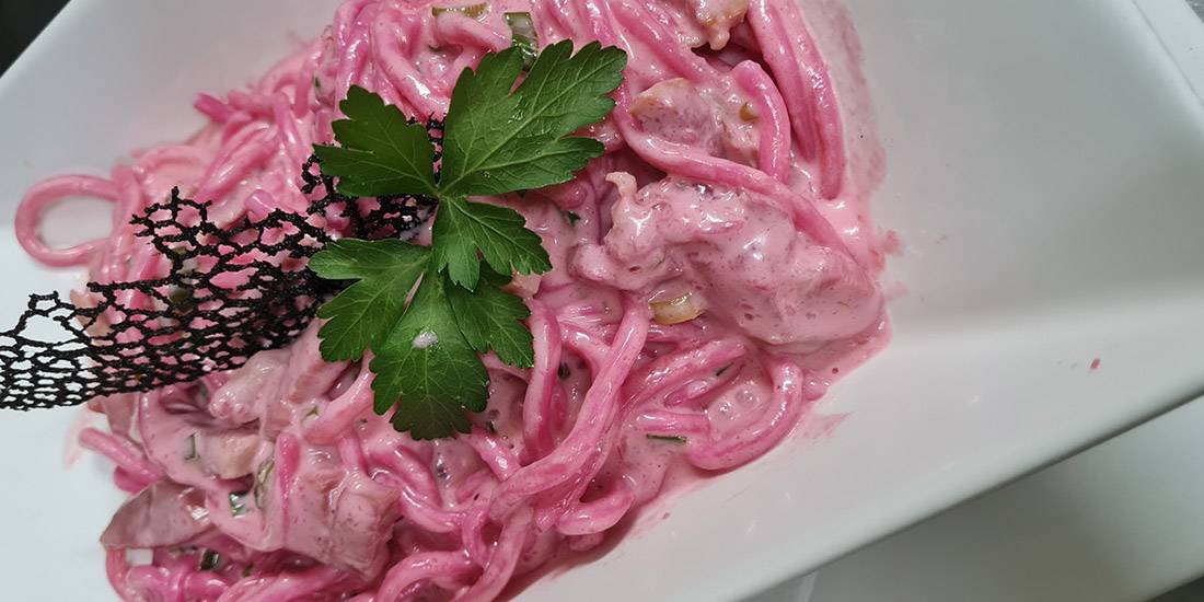 TALLARINES DE REMOLACHA Salsa Recomendada: Crema, Jamón Crudo y Verdeo